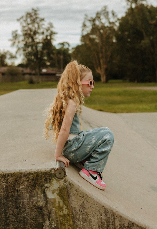 Organic Embroidery Posy Overalls | Ice Blue
