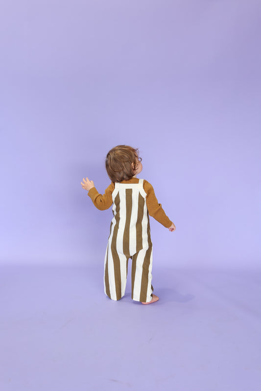 Vertical Stripe Knit Overalls | Coffee